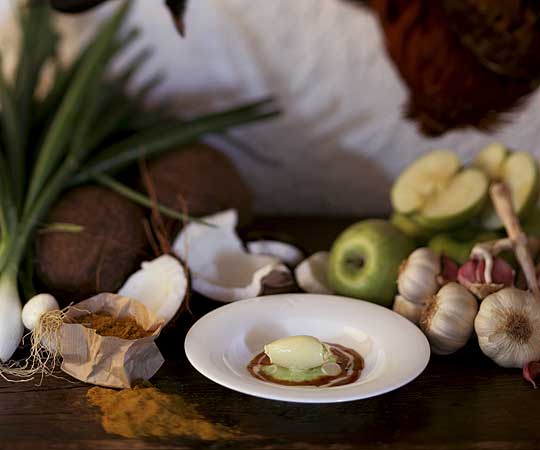 Aquí el retrato del pollo al curry (su primer plato de lo que luego se conocería como «deconstrucción»)